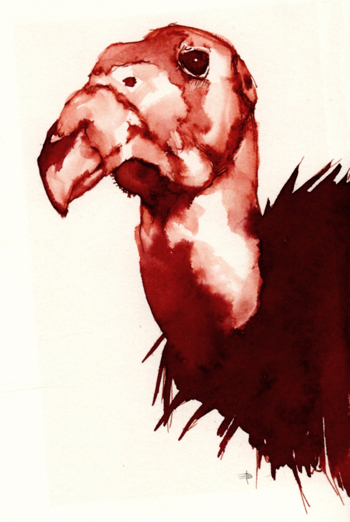 Drawing of California Condor using Diamine Oxblood Ink. Based on exhibit at the San Diego Natural History Museum.