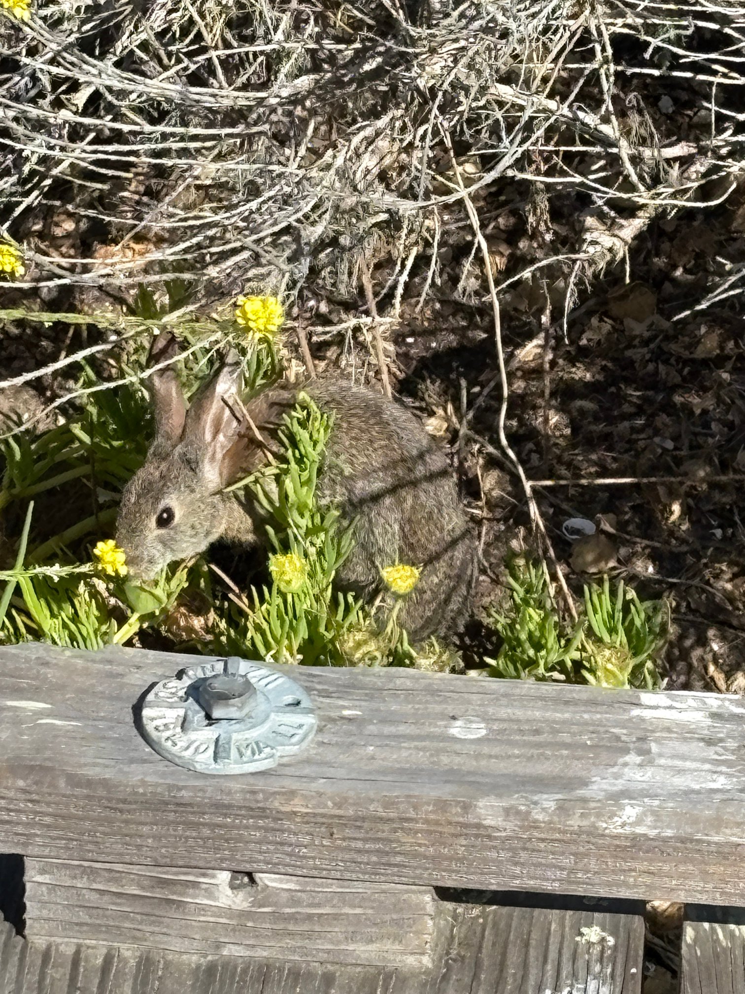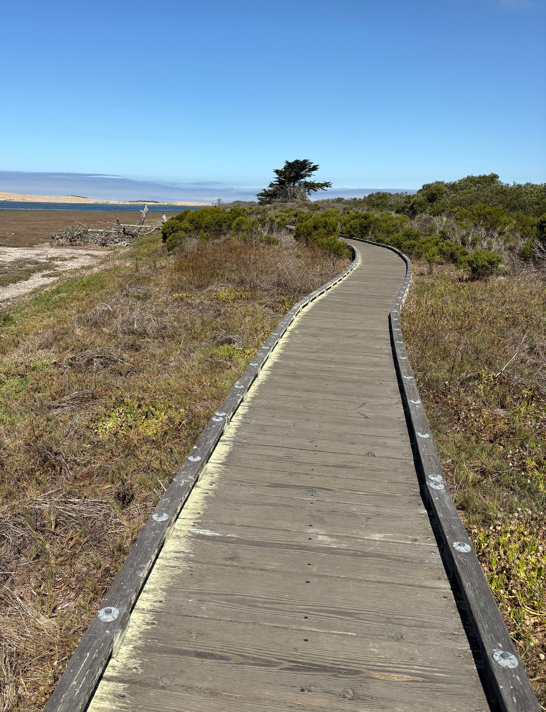 Each morning while vacationing in Morro Bay, California, I drove to the Morro Bay State Park and walked the Marina Peninsula Trail with views of the harbor and estuary. The newly constructed boardwalk was elevated above the land, and it provided a sanctuary for rabbits that darted beneath it from the nearby chaparral as birds of all types filled the scene with graceful activity.