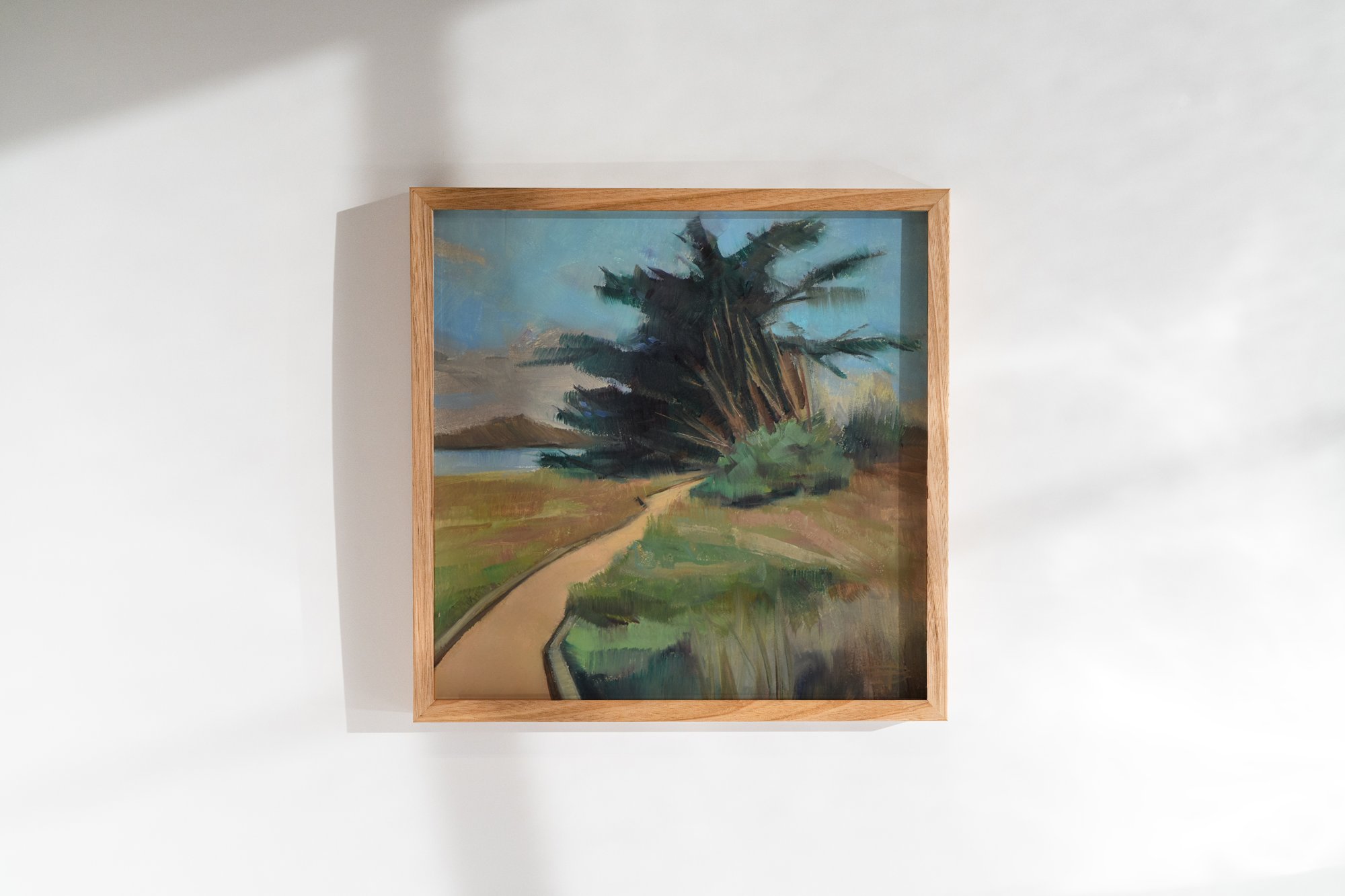 Oil on 6x6" Ampersand board. Framed (may vary from one in photo).