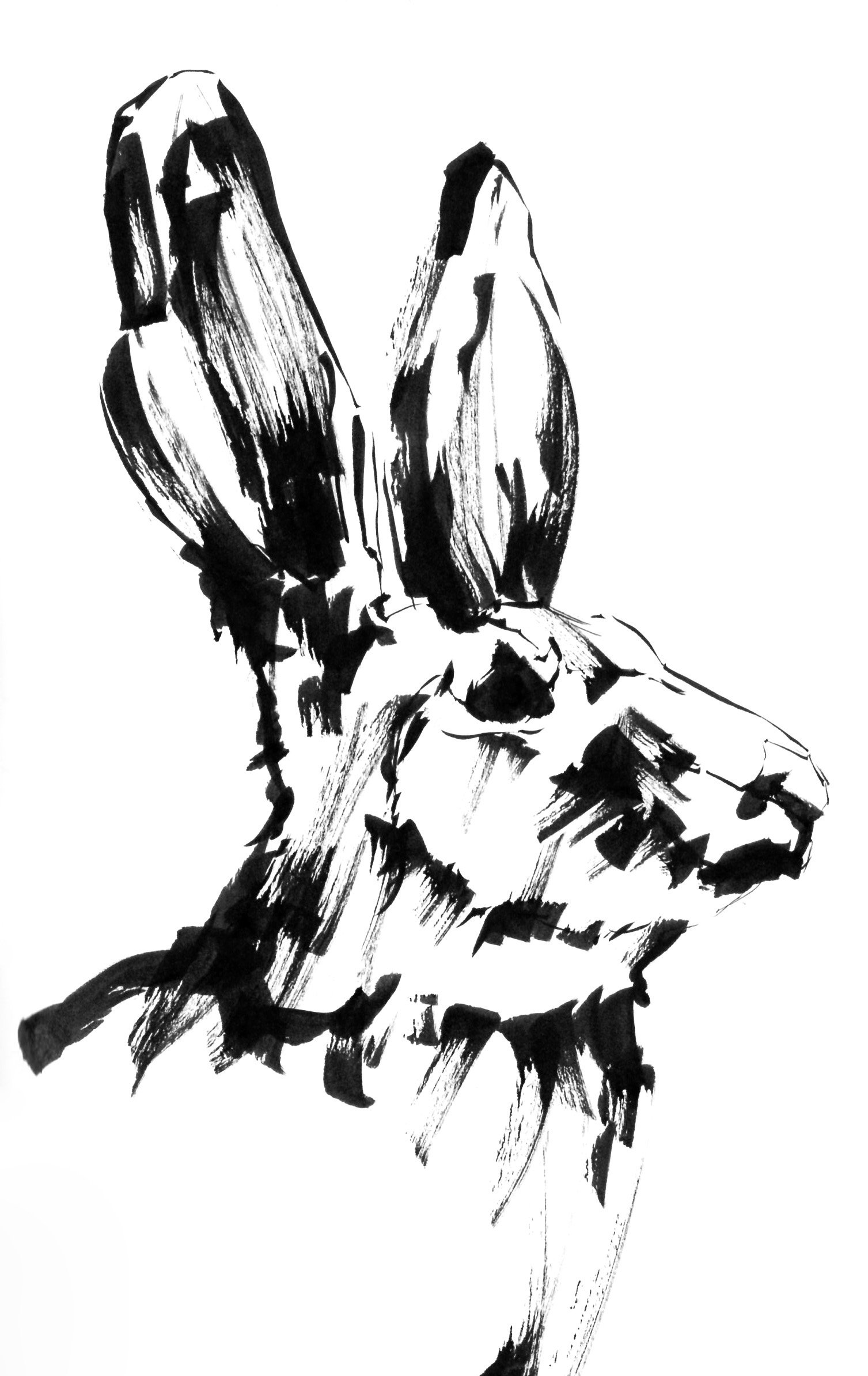 Ink brush sketch of Rabbit. Paper measures approximately 5x8"